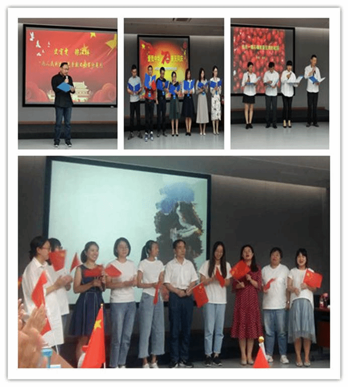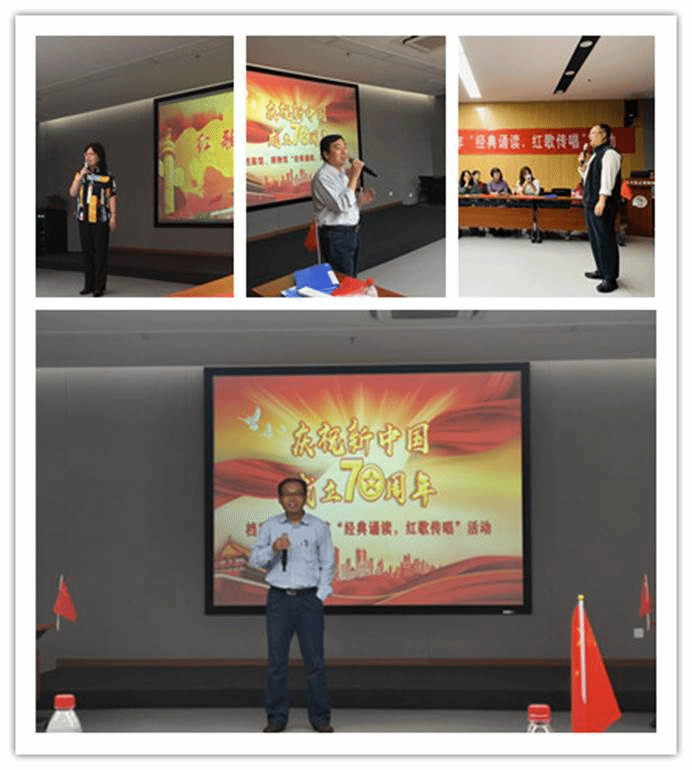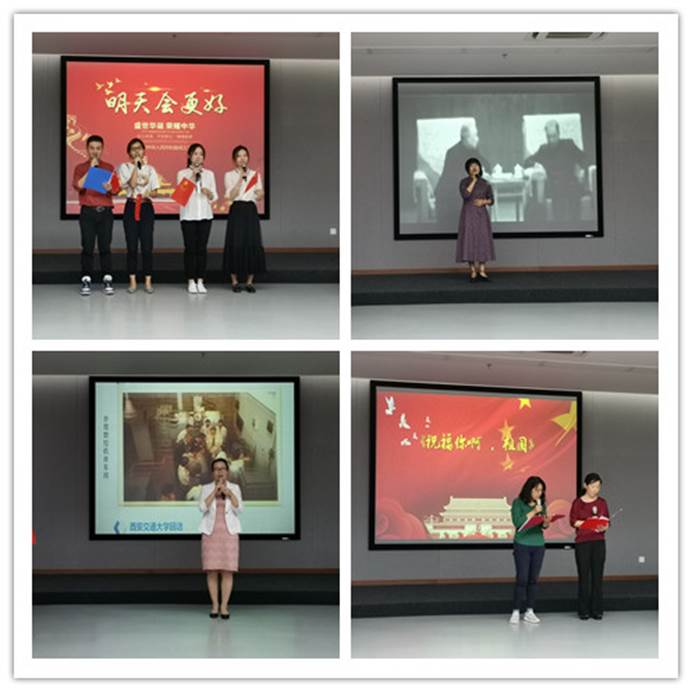 此次活动由档案馆的杨凌和博物馆的李婧两位老师主持。首先,全体老师合唱《中华人民共和国国歌》,为此次活动拉开了序幕。新中国成立70周年,七十年风雨兼程,七十载光辉岁月,七十年的中国发生了翻天覆地的变化,小合唱《明天会更好》表达了我们坚信在党和以习近平总书记为核心的党中央坚强领导下,我们的明天会更好!《有一种交大记忆叫“中心大楼”》,在刘淑妮老师的娓娓道来下,不但使我们了解了“中心大楼”的历史,也使是我们进一步了解了老一辈交大人“向科学进军,建设大西北”的豪情壮志。质朴动人的诗朗诵《我在一颗石榴里看见了我的祖国》,使我们对祖国那些难以名状的崇敬和爱意,从此有了形象。《大中国》,这熟悉的旋律一想起,就能激起大家心底的一种激情,那就是我们都有一个家,名字叫中国,最终小合唱变成了大合唱。