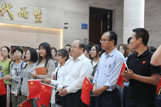 开展前,崇实学子以快闪的方式演唱《我和我的祖国》。热情激昂的歌声、鲜艳飘扬的红旗、活力四射的精神面貌,都在展示着交大人向祖国喝彩,为创新喝彩的决心与力量。