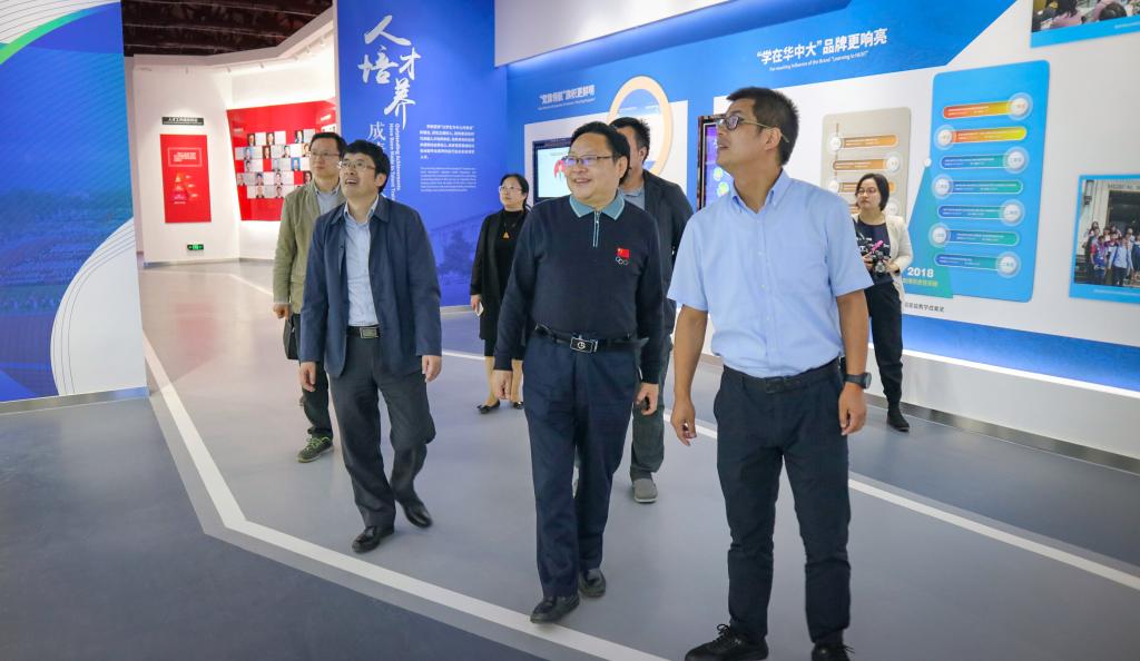 汇报会结束后,马尚云副馆长一行在谢正学副书记、范智新馆长的陪同下,先后来到华中科技大学校史馆、师生服务中心进行参观。在校史馆重新布展的现代展厅和新建成的科学技术馆,马尚云副馆长对其中陈列展示的丰富的图片、实物档案表示赞赏。随后,马尚云副馆长一行来到档案大楼建设现场,听取了基建处李国成处长关于档案大楼建设情况的介绍。