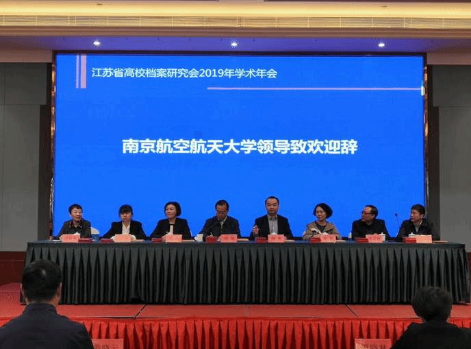 2019年11月6日上午,由江苏省高校档案研究会主办、南京航空航天大学承办的江苏省高校档案研究会2019年学术年会在溧阳召开。南京航空航天大学党委副书记陶勇、江苏省档案馆副馆长赵深、社会事业处处长谢微、江苏省高校档案研究会理事长、南京大学档案馆馆长吴玫以及江苏省教育厅监事王燕等出席会议。会议由江苏省高校档案研究会秘书长东南大学档案馆馆长黄松莺主持,来自全省70多所高校的170余名代表参加了会议。