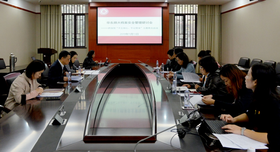 2019年11月13日,华东师大档案馆组织“不忘初心、牢记使命”主题教育日活动——档案安全管理研讨会。人事处、财务处、实验室与设备管理处、基建处、后勤管理处、国有资产管理处和学生工作部等部门档案负责人出席会议。研讨会由档案馆收集指导部主任冯珺主持。
