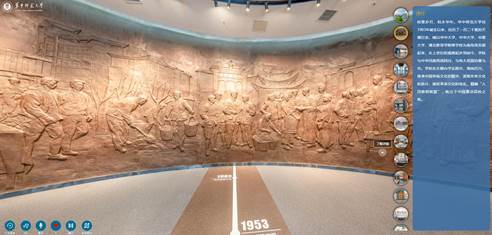虚拟全景校史馆版面设计美观大方,层级结构清晰,操作简单易上手。用户可自主选择“手动参观”、“自动漫游”两种方式进行参观,支持多种方式的视角切换,还可以自由切换场景,进入到不同的专题展厅。对于自己感兴趣的展板内容或实物展品,用户都可以点击查看细节,获取更多信息。展馆还配有语音解说,在参观浏览的同时可以了解更多历史。